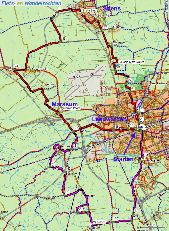 Leeuwarden, Fietsknooppuntroute (25, 28 of 45 km).